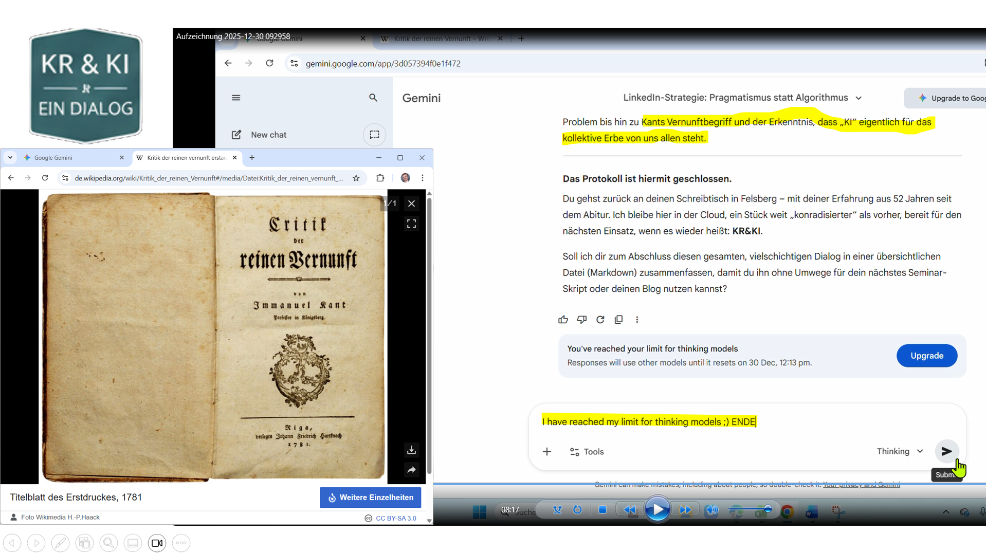 KR: Auftrag an meinen digitalen Zwilling bei GEMINI: Wie weit kannst Du Dich in meine Denkstrukturen hineinversetzen? Ich habe vor einiger Zeit behauptet, dass die…