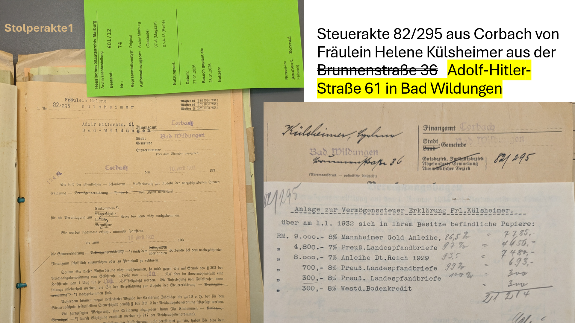 Eine Stolperakte beim Finanzamt Korbach statt eines Stolpersteins in Bad Wildungen